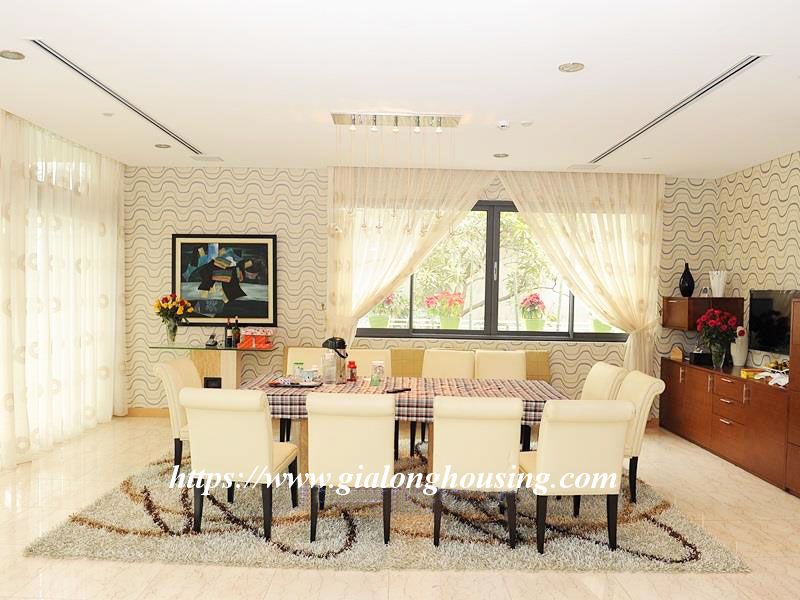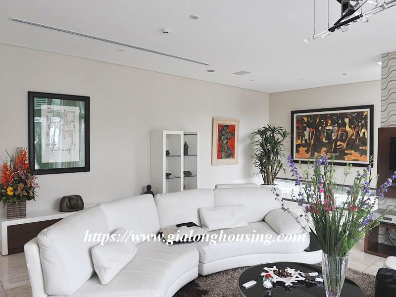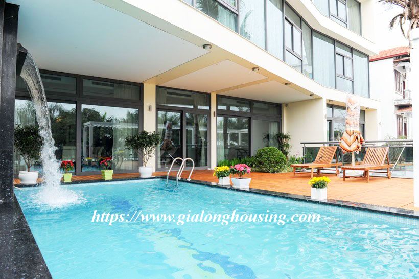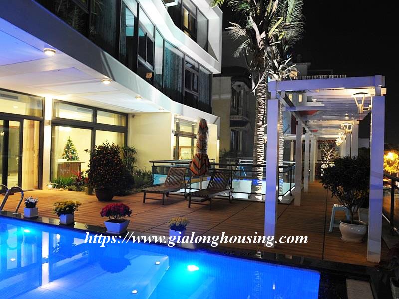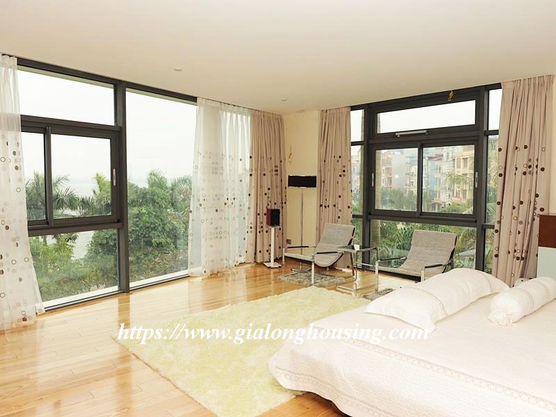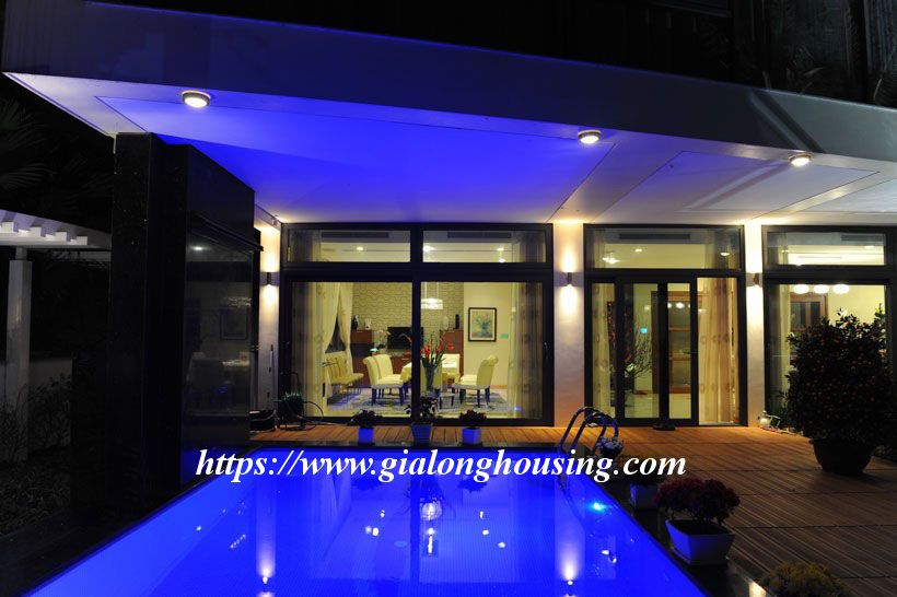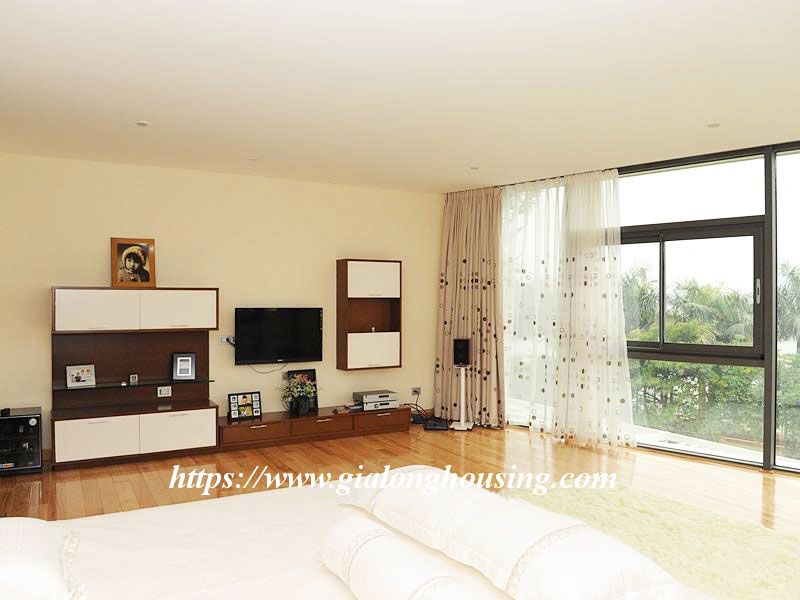 Located in front of West lake, this nice villa will be your sweet home with modern design. The whole villa is full of sunlight and fresh air with an outdoor swimming pool. The total area is 630 sq m, 06 bedrooms and 05 bathrooms. The furniture and equipment are customized by the landlord's preference, both comfortable and convenient. Contact us to visit it today.