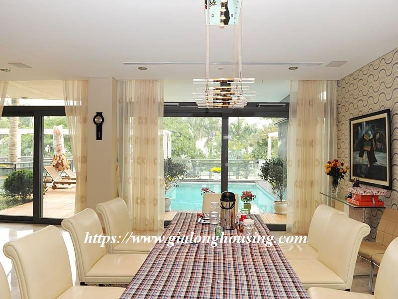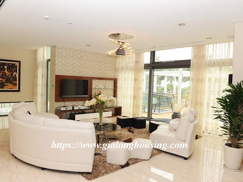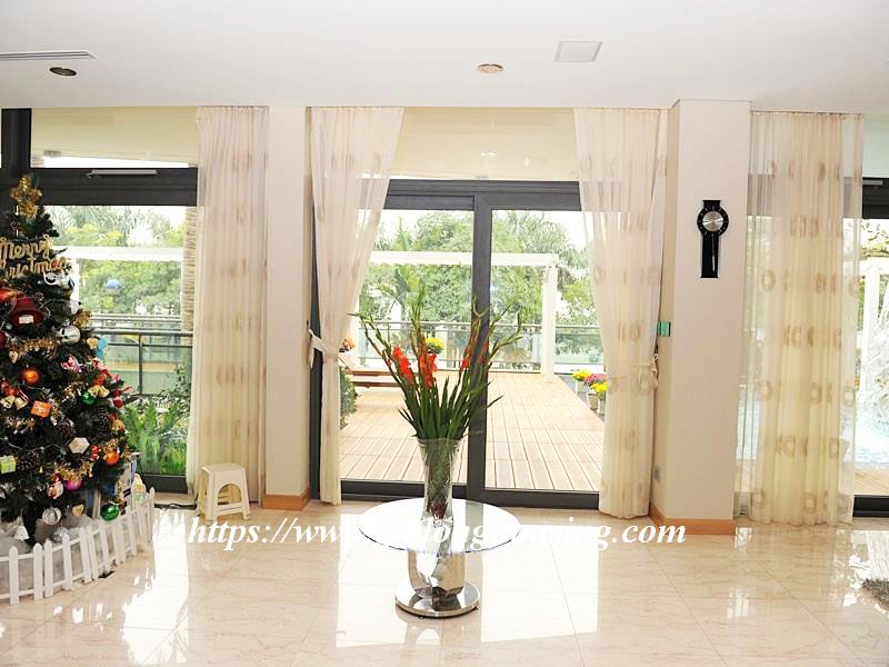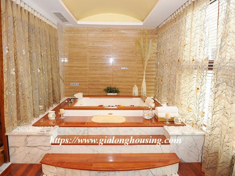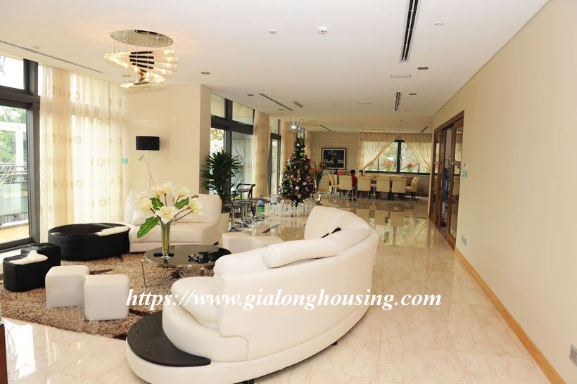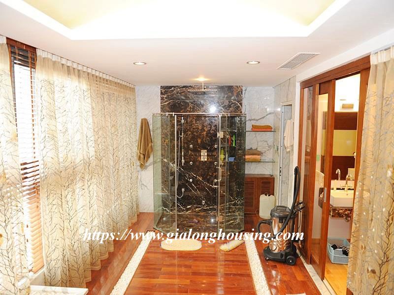 Located in front of West lake, this nice villa will be your sweet home with modern design. The whole villa is full of sunlight and fresh air with an outdoor swimming pool. The total area is 630 sq m, 06 bedrooms and 05 bathrooms. The furniture and equipment are customized by the landlord's preference, both comfortable and convenient. Contact us to visit it today.
