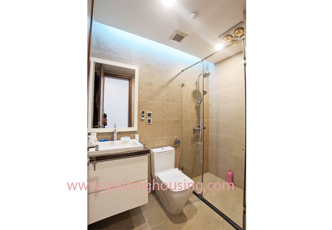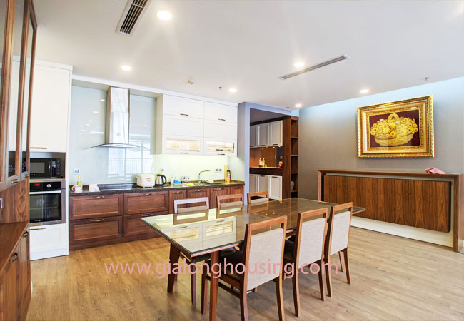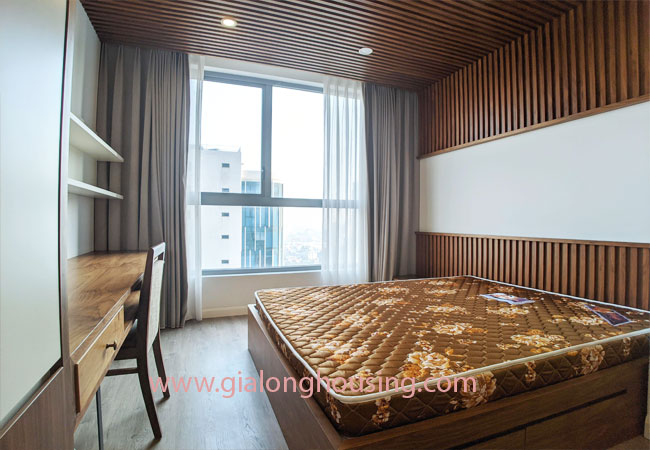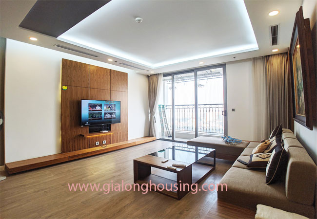 A nice three bedroom apartment for rent in Vinhomes Nguyen Chi Thanh, Dong Da district, Hanoi with total living area 120 m2 composed into 03 bedrooms, 02 bathrooms,combined living combined dining area with open kichen., sofa senior. smart tivi the apartments full furnished, with large windows. It’s full furnished dining table with six chair, sofa, coffee table, It’s fully covered with high quality wooden floor, equipped with high quality furniture and modern home appliances.good view