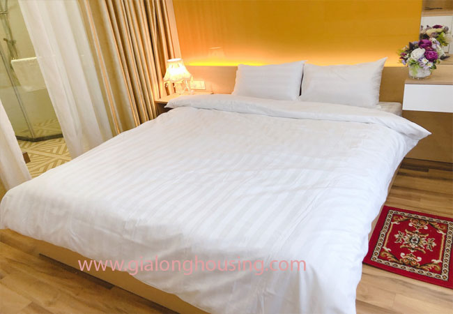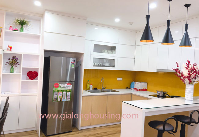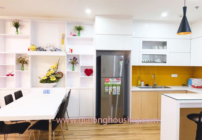 The apartment is fully furnished with high quality furniture, covered with wooden floor, leather sofa and big screen TV in living room, connected with balcony, a spacious kitchen with a bar area, dining table for 06 persons. It has both tub and shower in bathroom of mater room. All bedrooms have big screen windows that bring natural light and fresh air.