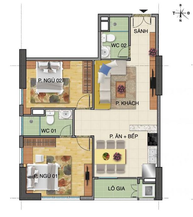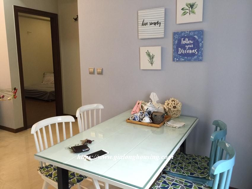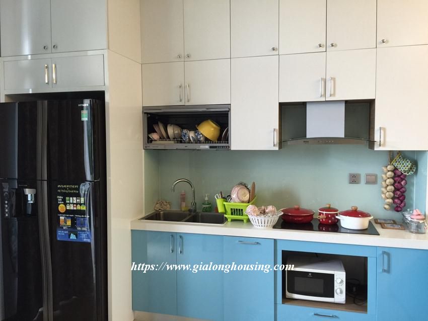 Located in the corner of CT2 building, this apartment is bright and nice with the open windows from both bedrooms. The total area is 82 sq m, including 02 bedrooms and 02 bathrooms. The landlord provided full of furniture and equipment, suitable for long term contract. The opposite building has swimming pool, gym and sauna.