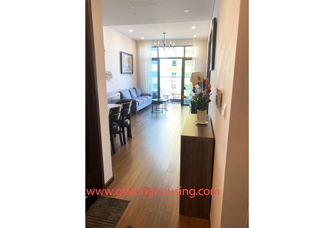 Modern 02 bedroom apartment for rent in Sun Grand City Ancora, Luong Yen, Ha Noi. It's size 80 sqm, 2 bedrooms, 2 bathrooms, living room shared dining area and close kitchen. It's located at high floor, full furniture and equipment, for more information please contact us now