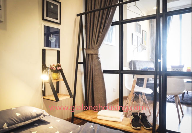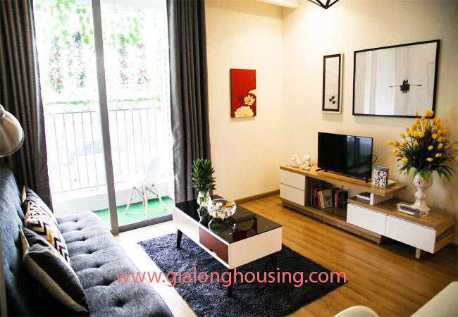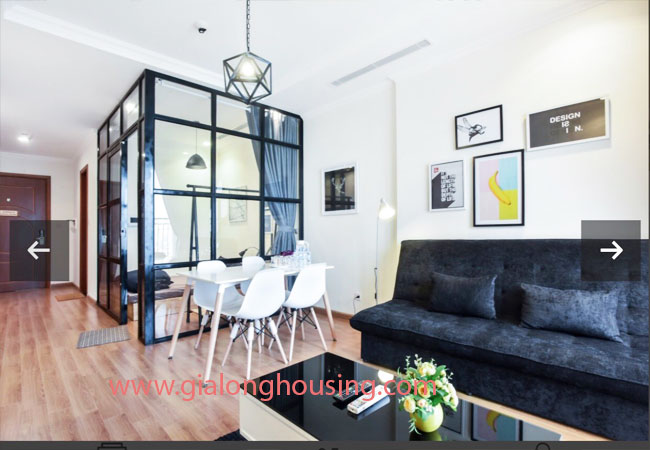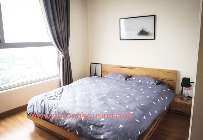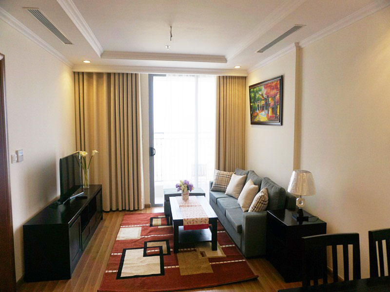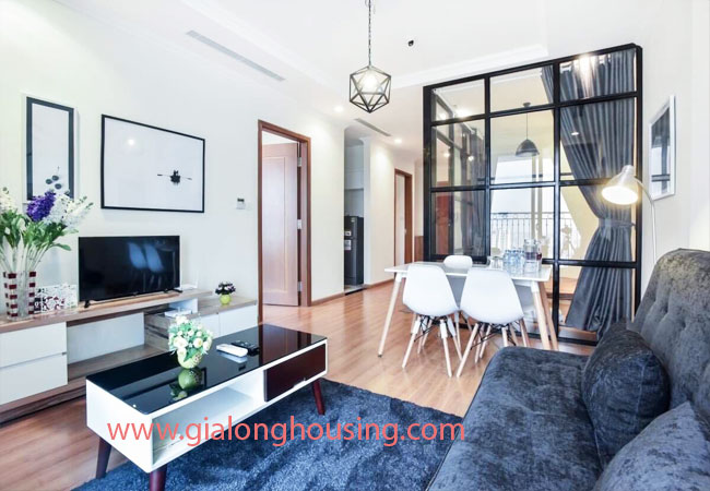 Nice furnished apartment for rent in Vinhomes Nguyen Chi Thanh. It has 86m2 area composed into 02BRs, 02 bathrooms, living room, dining area and a separated kitchen. The unit is fully covered with wooden floor, and fully furnished with modern furniture. It has a balcony in the living room over looking to city, and windows in the bedrooms, bring natural light and fresh air to the apartment.