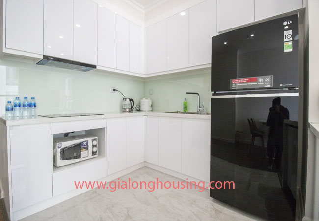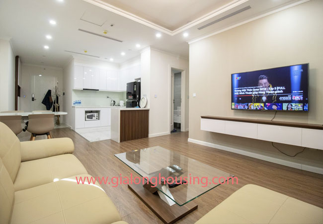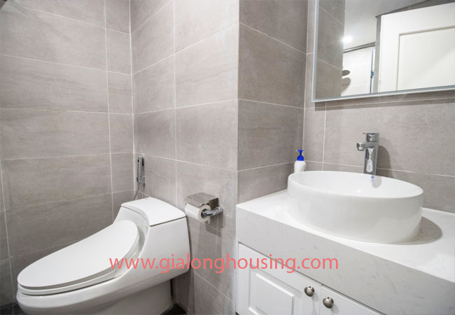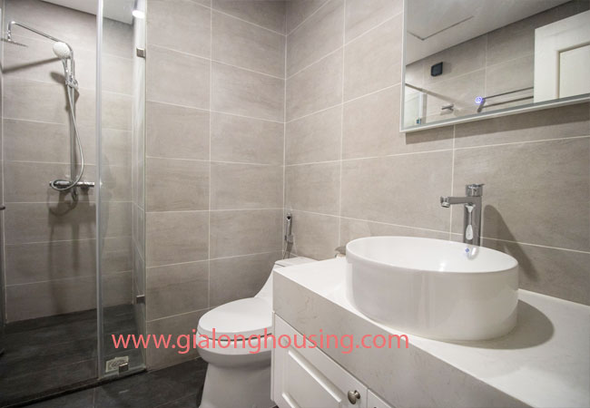 Apartment for rent in Sunshine Riverside Tay Ho, has a total of 80 sq.m in large, comprising of two double bedrooms built-in full bedding, walk-in wardrobes, bedside…etc. two bathrooms with shower cabin, one spacious living room combines with an open plan kitchen and dining table.