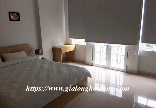 This serviced apartment is located in the highest floor of a new serviced building at the end of the lane. With the modern and simple style, this apartment will meet your requirements for a cozy accommodation. The total area is 90 sq m, including 02 bedrooms and 02 bathrooms. The whole apartment is full of sunlight and fresh air. The landlord provides : housekeeping service, wireless internet and cable TV.