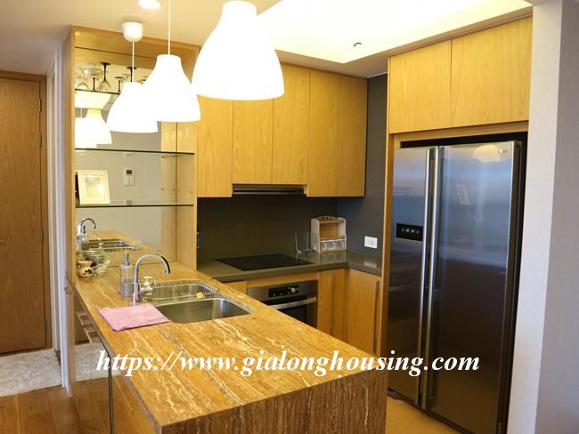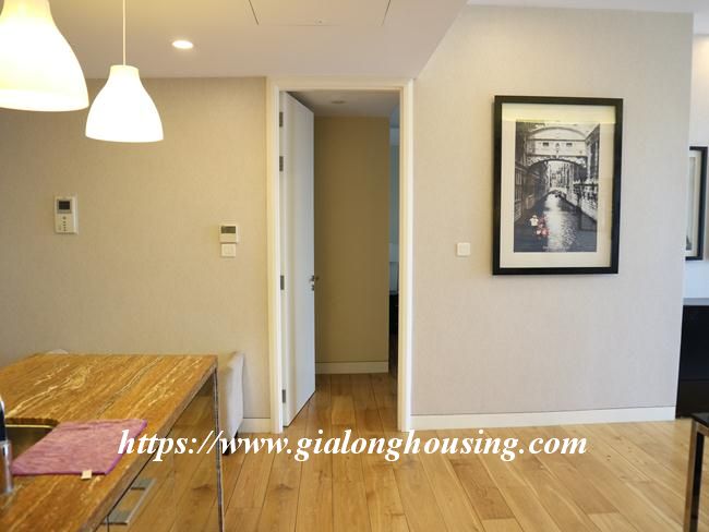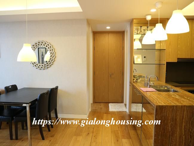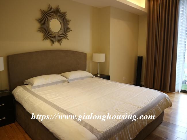 This nice apartment is located on high floor of Indochina Plaza Hanoi (IPH), the big building at the corner of Xuan Thuy and Pham Van Dong street. The location is good, at the opposite side of National University. The total area of the apartment is 98 sq m, including 2 bedrooms and 02 bathrooms. It is fully furnished and you can move in immediately.