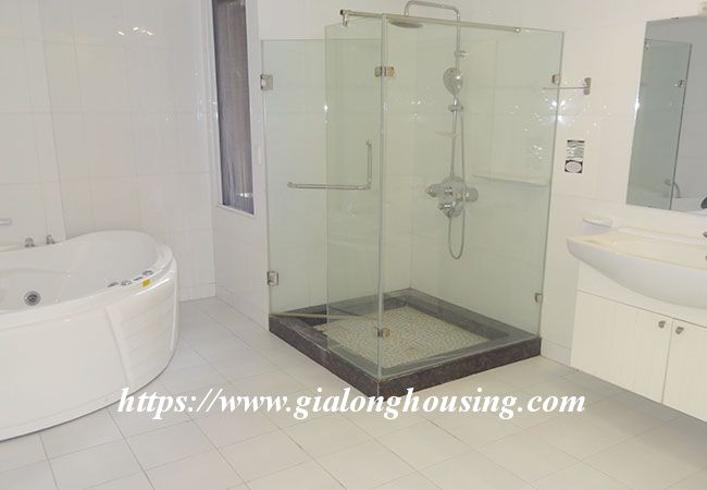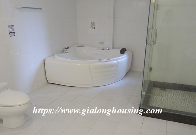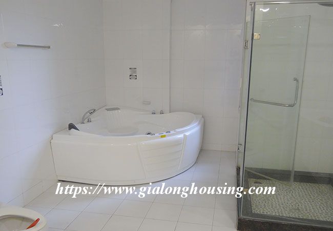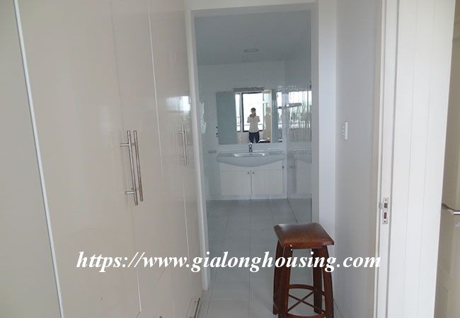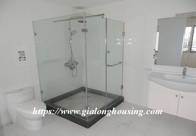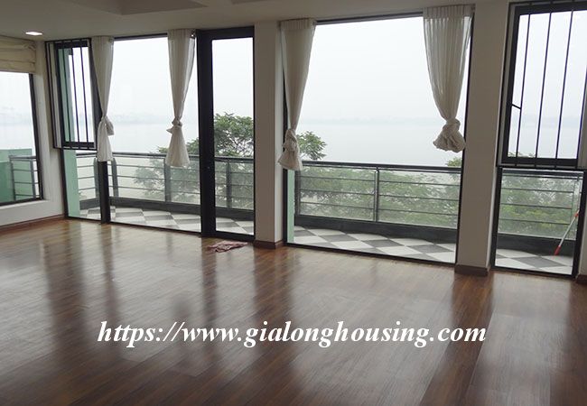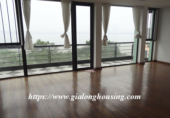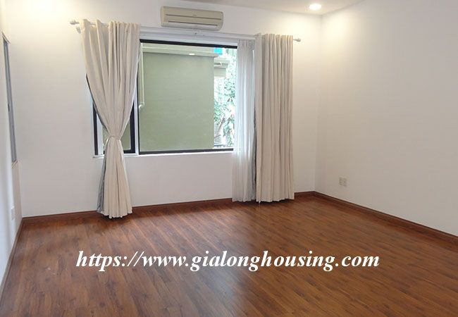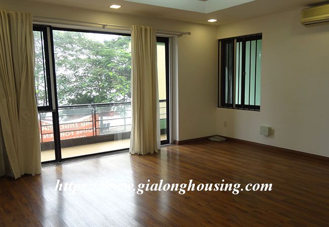 This unfurnished big house is located in the opposite of West lake. The ideal location attracts the tenants from very first sight. The total land area is 200 sq m x 5 floors. The house has a large yard. There are 5 bedrooms and 6 bathrooms. All the rooms have wooden floor, large windows or/and balcony. The whole house is full of sunlight, fresh air and cool breeze from the lake. The landlord provides an electric backup machine/generator.