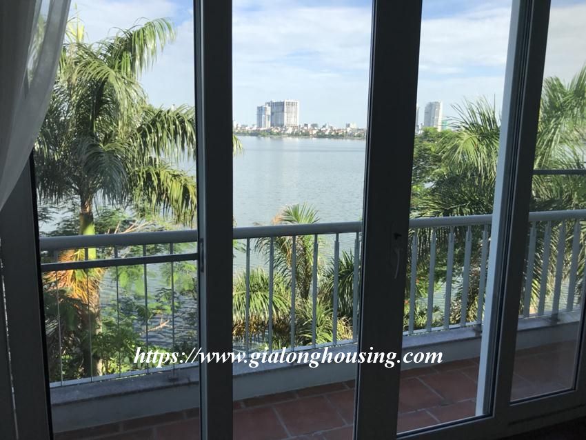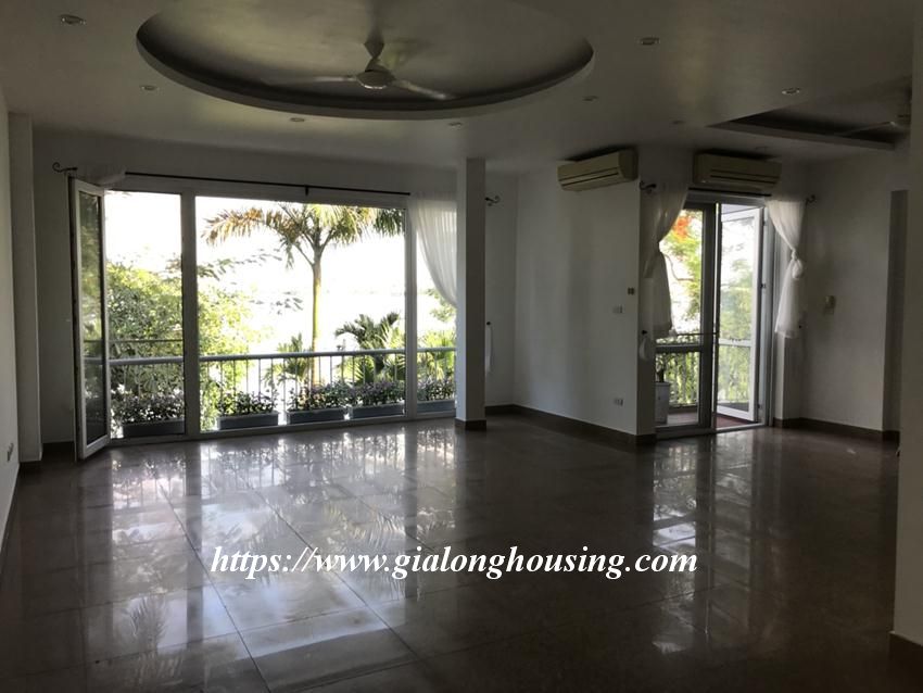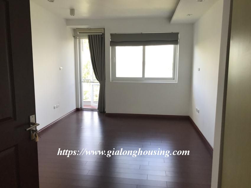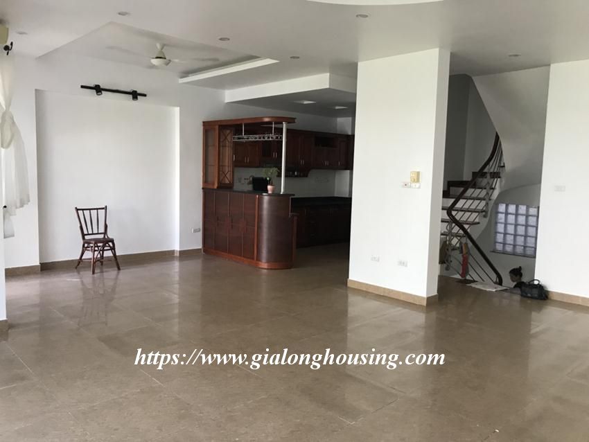 This unfurnished house is located in Dang Thai Mai street, facing to Westlake, with beautiful view from balconies. The total land area is 120 sq m, 4,5 floors house. The house has 04 bedrooms and 05 bathrooms, suitable for long term contract. The house has air conditioners, wooden floor and toilet equipment.