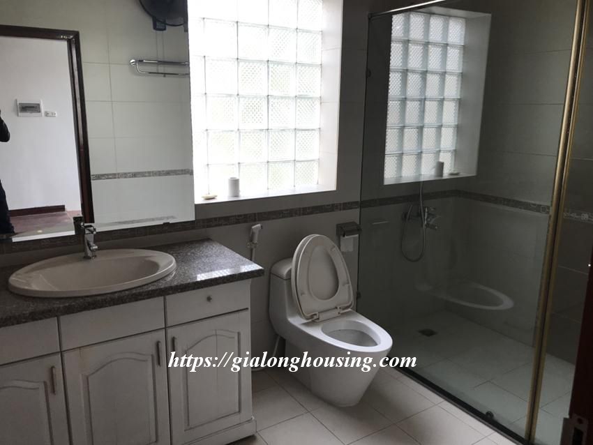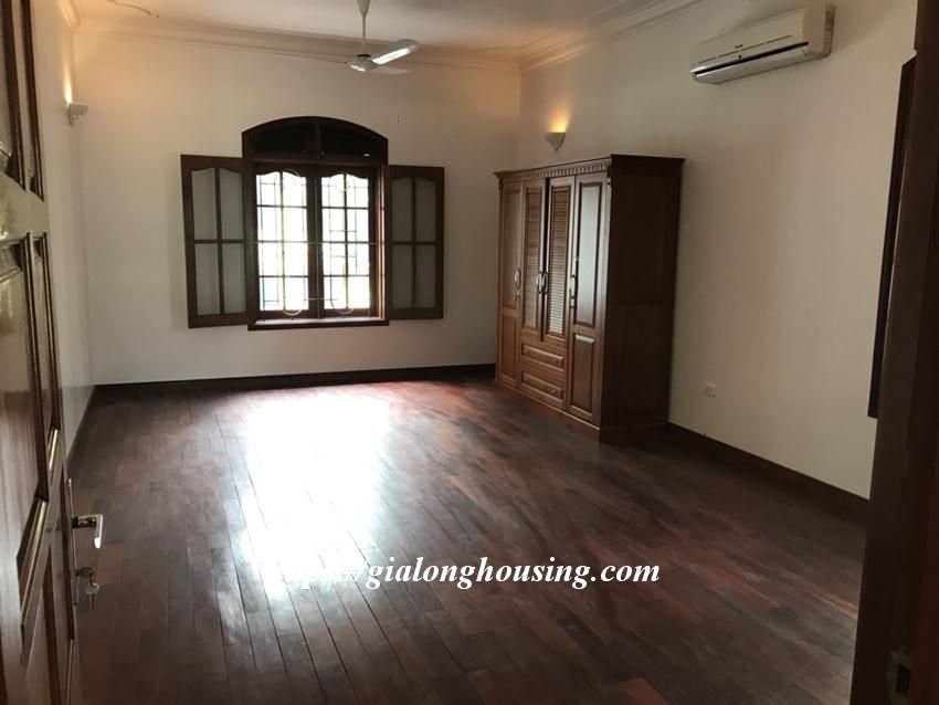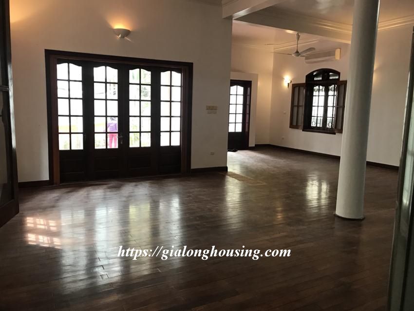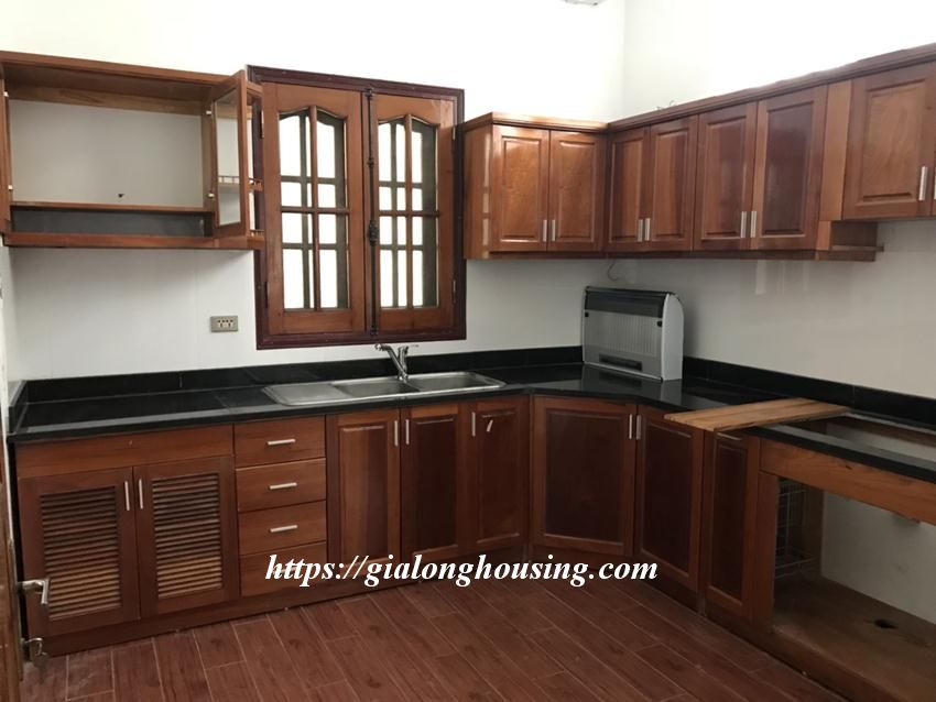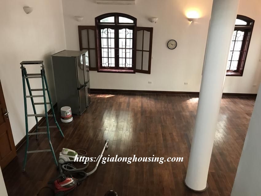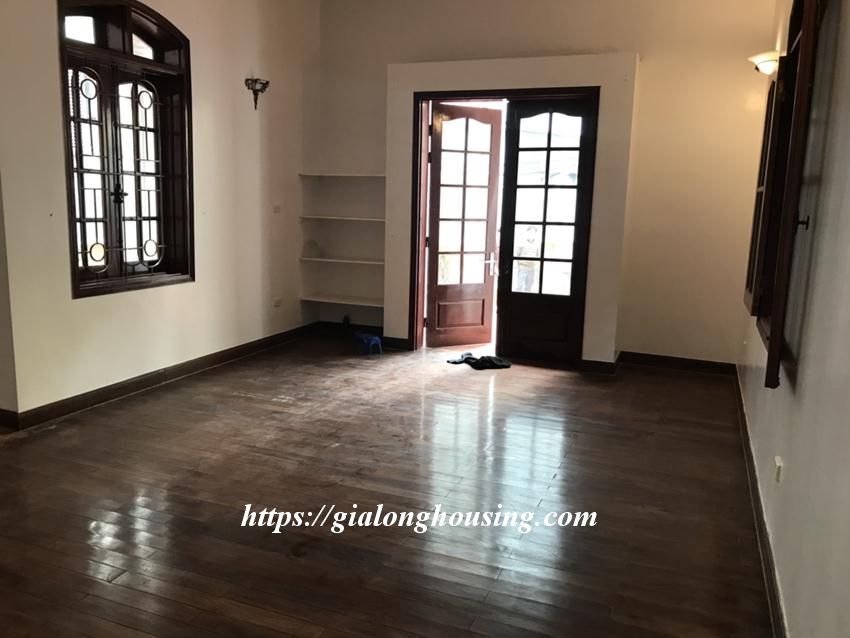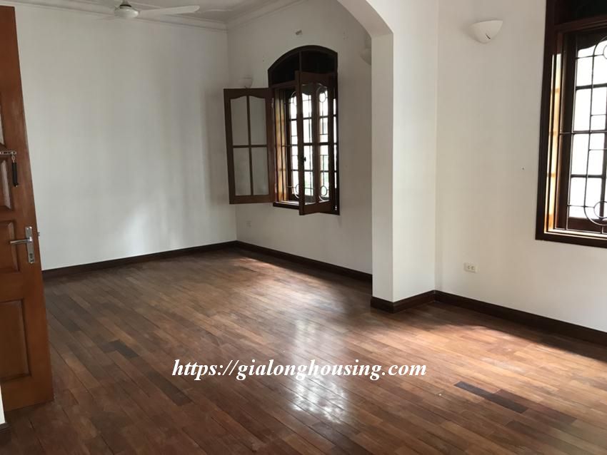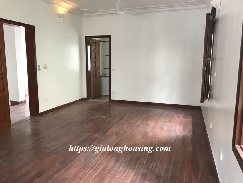 This unfurnished villa is located in lane 52 To Ngoc Van street, not far from West lake. The total land area is 240 sq m, the construction area is 120 sq m x 3 floors. The whole house is full of sunlight and fresh air. There are wooden floors, kitchen cabinet and bathroom facilities. The house has 4 bedrooms and 05 bathrooms, suitable for both home or office for rent.