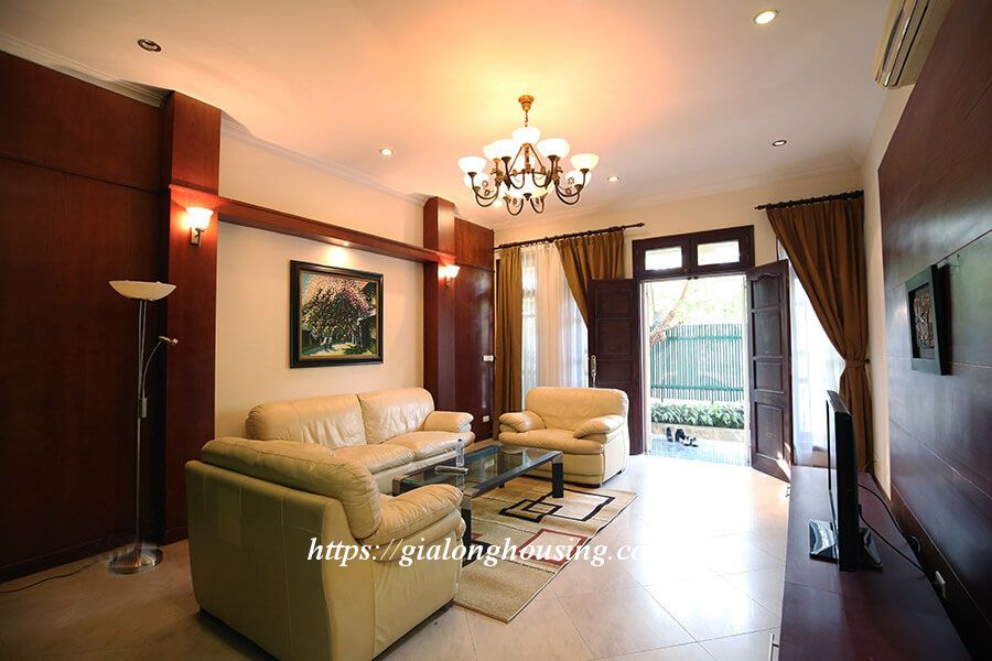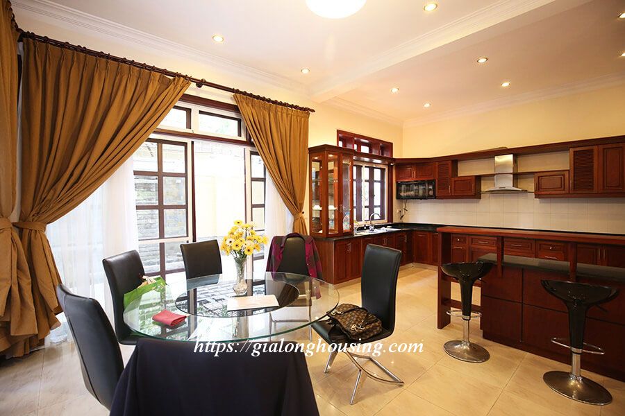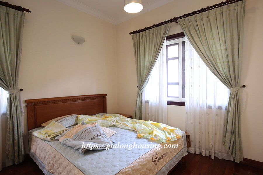 This nice villa is located in block C, not far from UNIS and Vo Chi Cong highway. The total land area is 200 sq m, including 05 bedrooms and 04 bathrooms. The villa has a small yard where you can plant some flower and play with your kids. It's fully furnished with all necessary furniture.