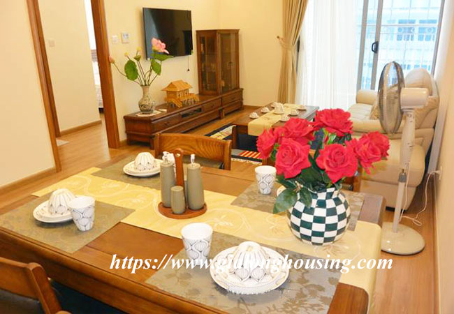 This nice apartment is located in high floor of the Vinhomes building. The total area is 86 sq m, including 02 bedrooms and 02 bathrooms. The apartment is bright and nice due to the modern design and smart layout. The building has swimming pool, supermarket, security 24/24, reception.