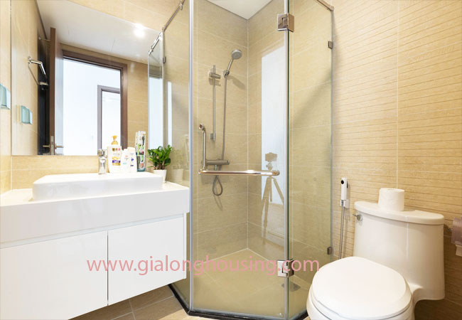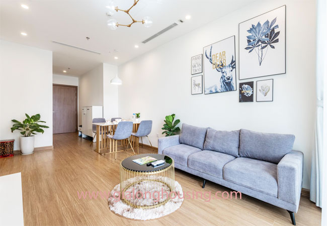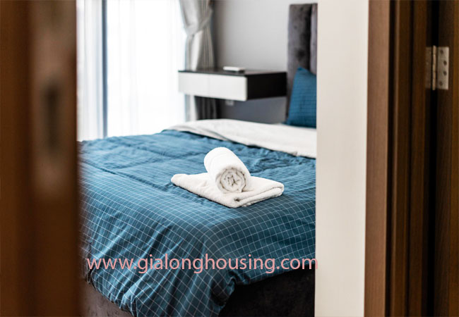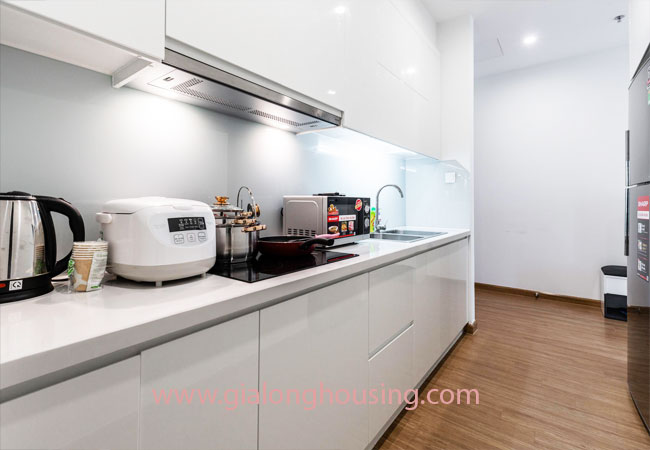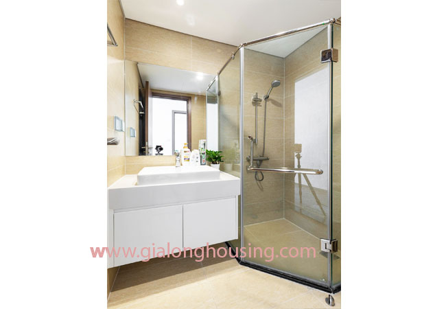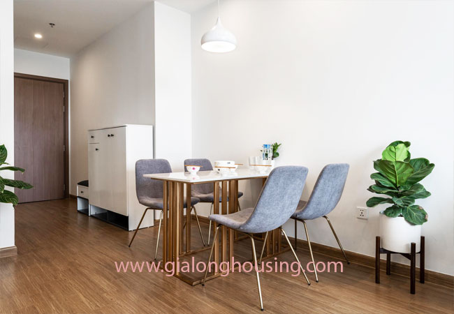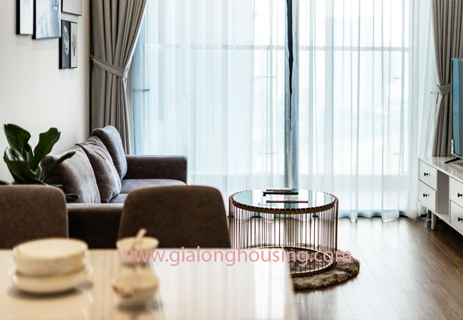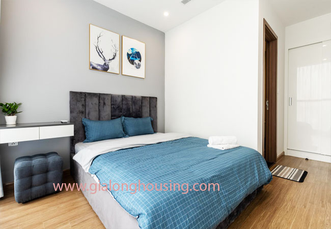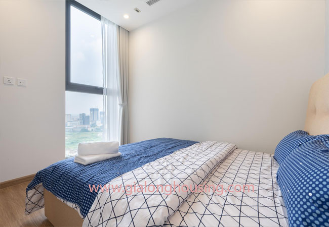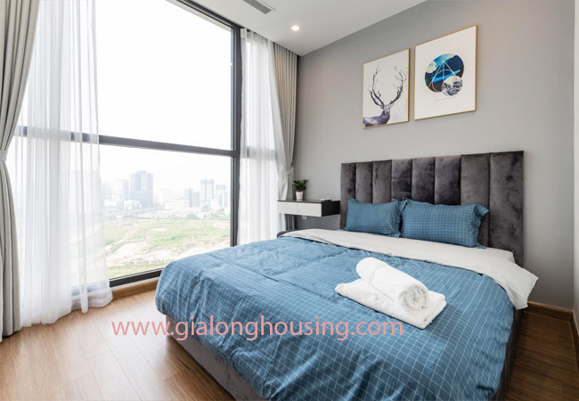 Apartment for rent in Vinhomes Skylake Pham Hung. The apartment is located on high floor of S3 Tower. It has 80 sqm of living area with modern design, composed into 02 bedrooms, 02 bathrooms, a spacious living room combined with dining area, open kitchen, nice balcony. This stunning 02 bedrooms apartment with amazing view of Ha Noi and the Lake. It’s full with natural light and fresh coming from balcony. The apartment is well decorated with modern style furniture.