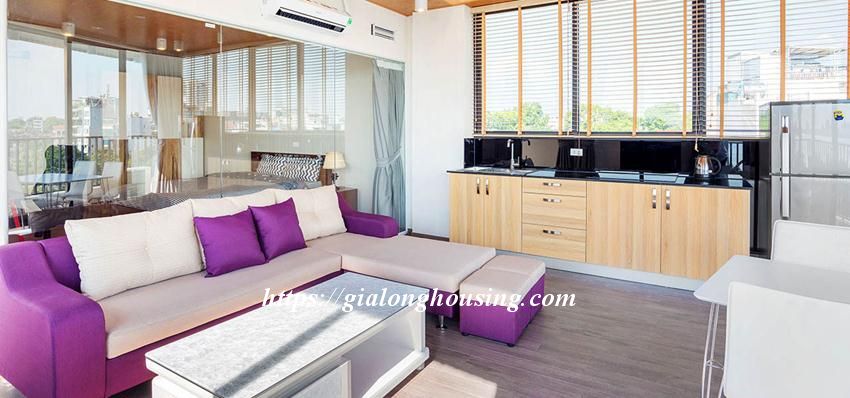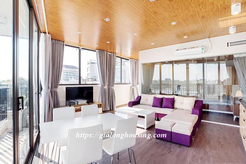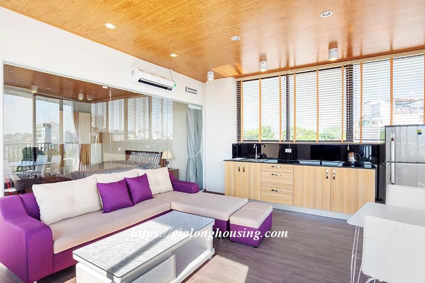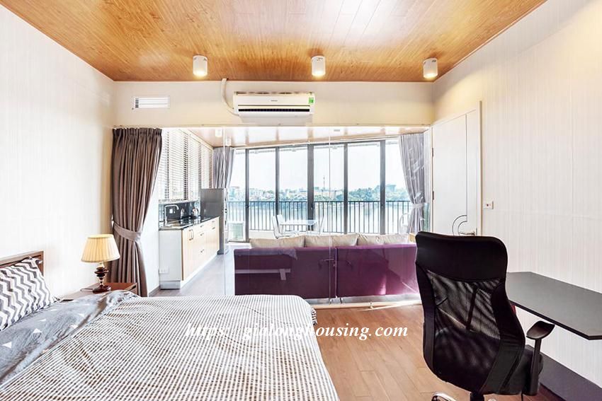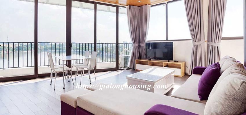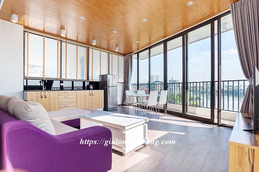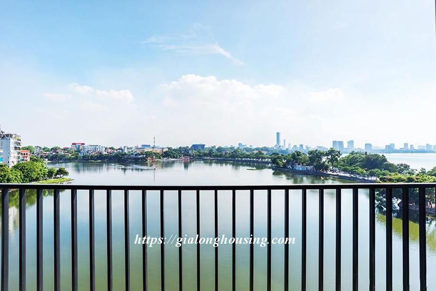 This apartment has amazing view to both Truc Bach and West lake due to the large glass windows and balconies. The total area is 80 sq m, including a bright living room, a modern kitchen and a cozy bedroom. There is no reason to not visit it today !