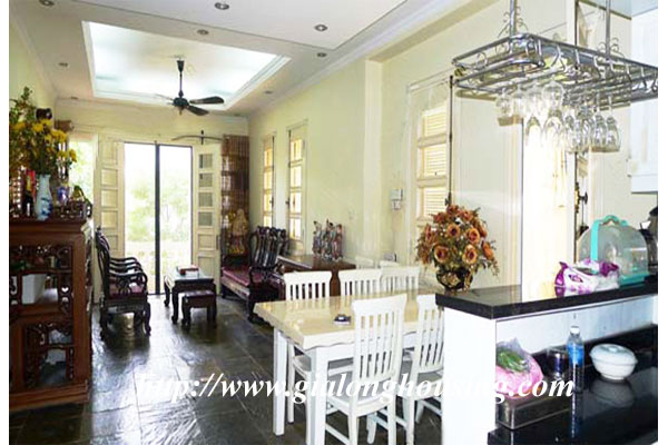 Căn biệt thự này ở phố An Dương Vương, gần sông Hồng. Với vị trí là đẹp, an toàn, yên tĩnh và thanh bình. Diện tích đất là 400 m2, với một biệt thự rất lớn và đẹp. Có 05 phòng ngủ, 02 phòng khách, 05 phòng tắm, khu vực đậu xe, hồ bơi trong nhà, tất cả đồ nội thất có chất lượng cao và thoải mái.