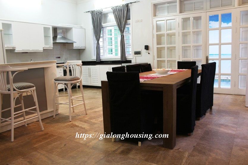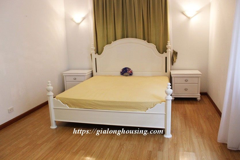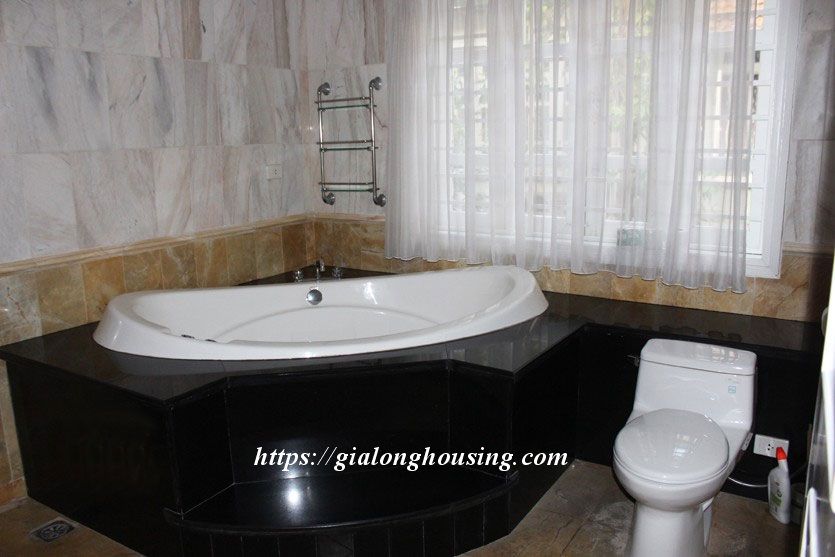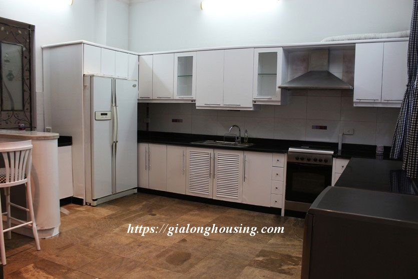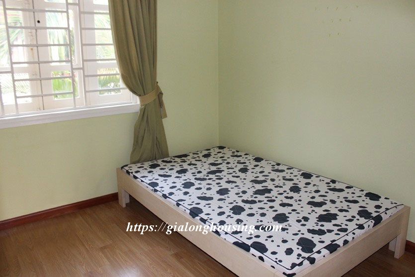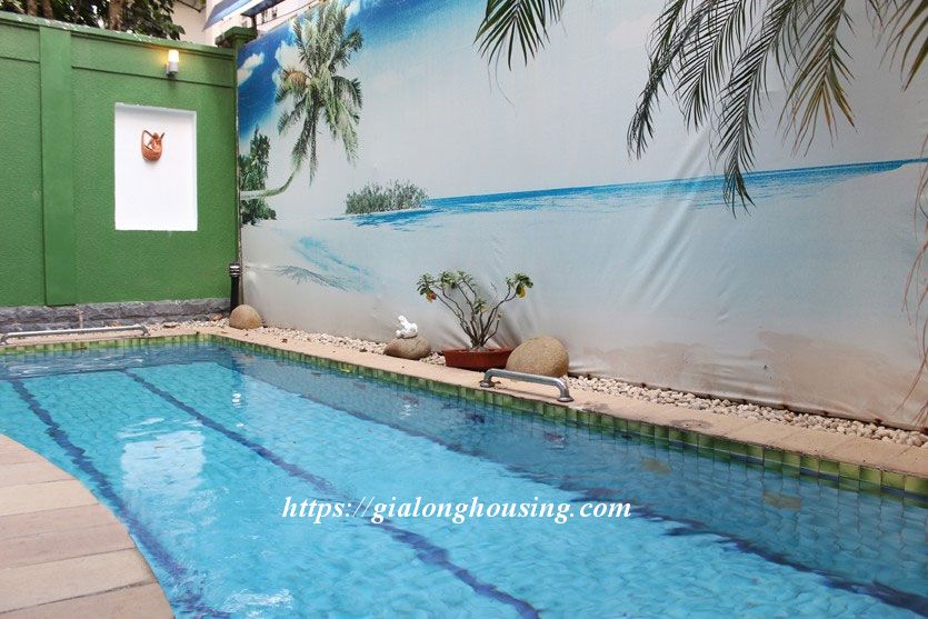 Với diện tích đất lên tới 250 mét vuông, biệt thự xinh đẹp này có hẳn một bể bơi tại sân sau, thích hợp cho gia đình sử dụng. Biệt thự có đầy đủ nội thất: giường, tủ, bàn, ghế, tủ bếp, thiệt bị vệ sinh, điều hòa, bồn tắm lớn. Có 03 vệ sinh và 04 phòng ngủ, rộng rãi thoáng mát. Khu đô thị có bảo vệ 24/24, siêu thị, trường học, sân golf.