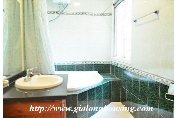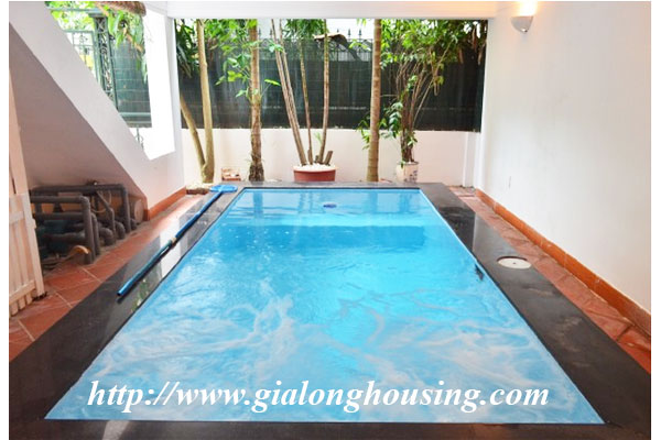 Đây là một biệt thự đẹp cho thuê trong hẻm đường Đặng Thai Mai , gần hồ Tây . Diện tích đất là 120 sq m và khu vực sinh hoạt là 450 sq m . Có 04 phòng ngủ và 04 phòng tắm , một hồ bơi trong nhà và một sân thượng lớn . Tất cả các phòng đều tươi sáng và tốt đẹp với ánh sáng tự nhiên và không khí trong lành . Các đồ nội thất được cung cấp bởi chủ nhà
