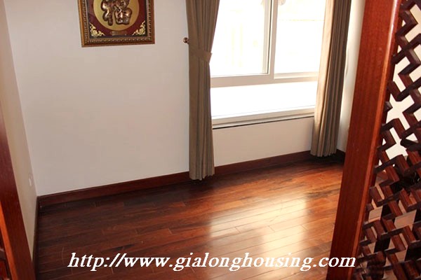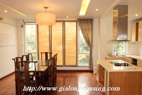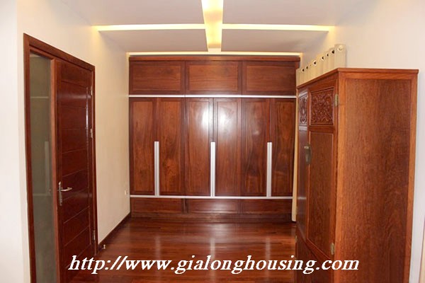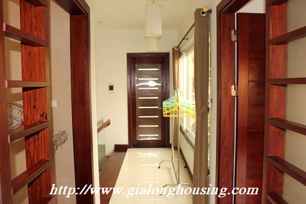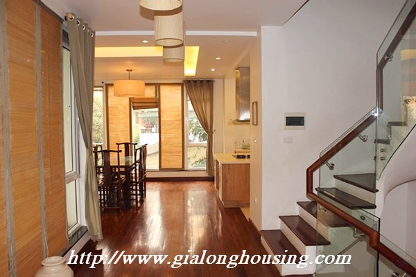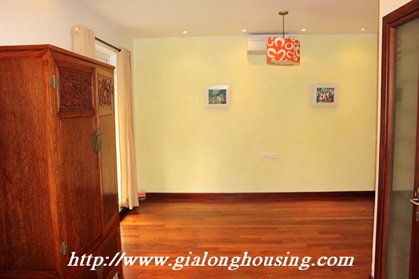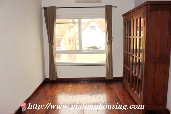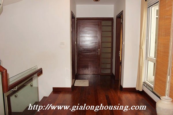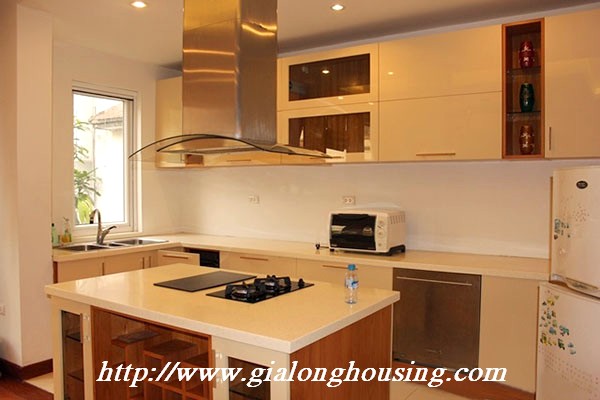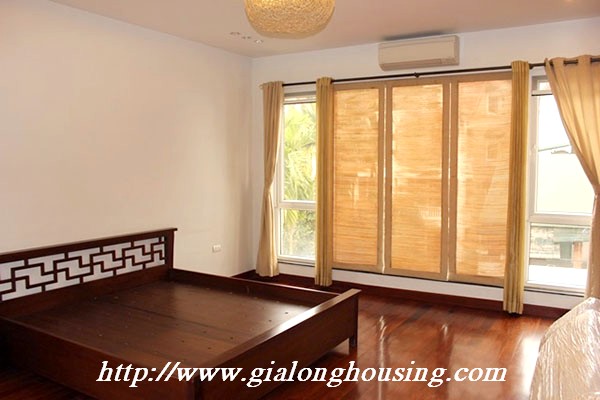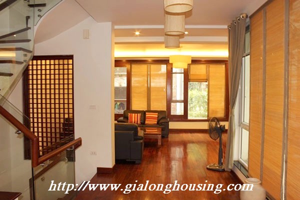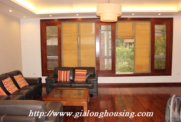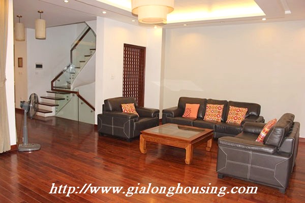 Biệt thự đẹp cho thuê tại phố Tô Ngọc Vân, quận Tây Hồ, đầy đủ tiện nghi với các thiết bị hiện đại và đồ gỗ nội thất: bộ ghế sofa lớn, bàn ăn và ghế, giường, tủ quần áo ... biệt thự này bao gồm 4 phòng ngủ, 3 phòng tắm , một nhà bếp được thiết kế đẹp, có ban công và sân thượng với tầm nhìn thoáng đãng. Tầng trệt được sử dụng làm bãi đậu xe và có một khu vườn nhỏ phía sau. Để biết thêm thông tin, xin vui lòng liên hệ với chúng tôi