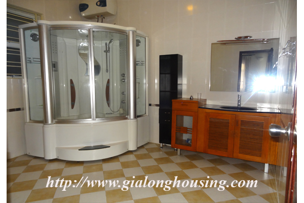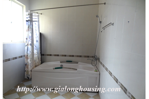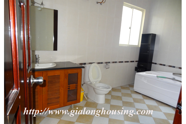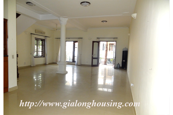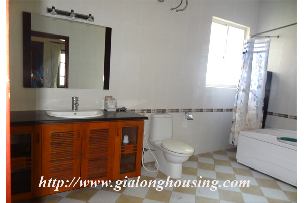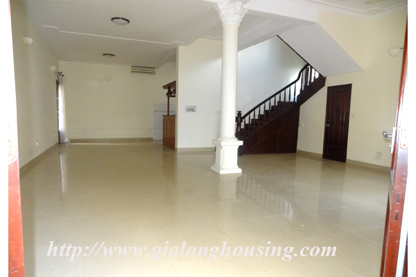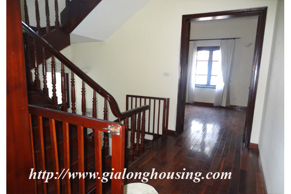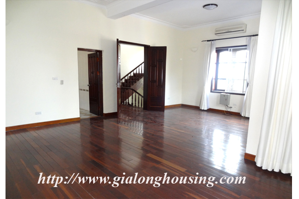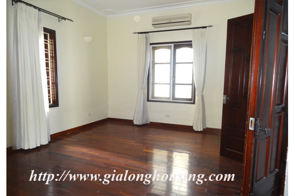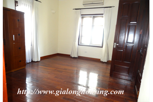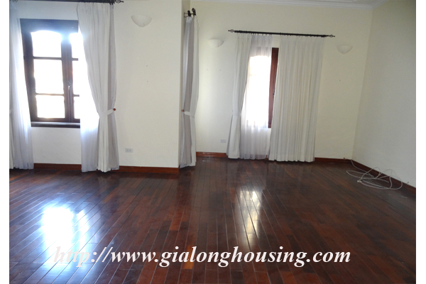 Một biệt thự đẹp cho thuê ở đường Tô Ngọc Vân Tây Hồ, Hà Nội với 5 phòng ngủ, 5 phòng tắm, phòng khách lớn, bếp, sàn gỗ, và chỗ đậu xe cho xe hơi.