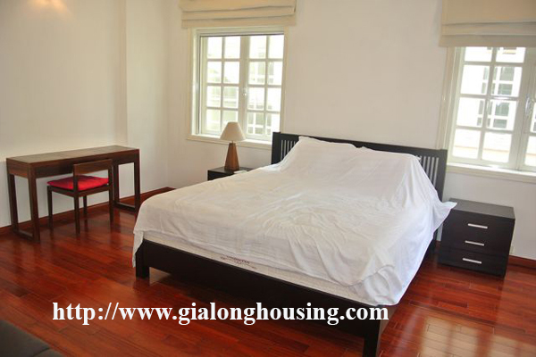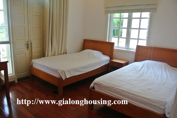 Một biệt thự tuyệt đẹp đầy đủ đồ cho thuê tại khu C5 Ciputra, quận Tây Hồ, Hà Nội. Diện tích đất là 230 mét vuông với 5 phòng ngủ, 4 phòng tắm, phòng khách lớn, nhà bếp hiện đại. Tất cả các phòng trong ngôi biệt thự này được trang bị nội thất tốt với mới, sang trọng và thiết bị phục vụ sinh hoạt cao cấp hiện đại. Mỗi phòng đều có giường ngủ với bộ đồ giường thoải mái kết hợp một phòng tắm lớn hiện đại (vòi hoa sen, bồn tắm). Gía cho thuê là 3500 $