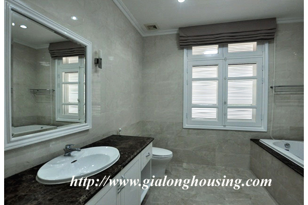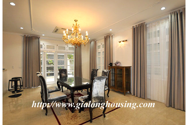 Biệt thự cực kì sang trọng với thiết kế theo phong cách phương Tây hiện đại, phù hợp với khách ở gia đình hoặc một vài người bạn ở cùng nhau. Biệt thự đã được trạng bị đầy đủ tất cả các trang thiết bị hiện đại, phù hợp với nhu cầu ở lâu dài của khách thuê. Diện tích đất lên tới 230 met vuông. Các phòng rất sáng và thoáng với cứa sổ kính.
