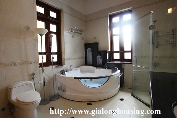 Biệt thự đẹp cho thuê tại phố Tô Ngọc Vân, quận Tây Hồ, Hà Nội. Diện tích đất là 300 mét vuông, diện tích xây dựng là 130 mét vuông mx 3,5 tầng. Nó có 05 phòng ngủ, 05 phòng tắm ( có phòng tắm hơi), phòng khách, bếp, nhà kho, sân vườn, hồ bơi, sàn gỗ, thiết bị hiện đại. Gần đó: các quán bar, quán cà phê, nhà hàng, siêu thị. Giao thông thuận tiện đến các đường phố chính. Đồ nội thất và tiện nghi: tủ bếp, bếp, máy giặt, tủ quần áo, bể bơi, bàn làm việc, phòng tắm hơi và bồn tắm lớn.