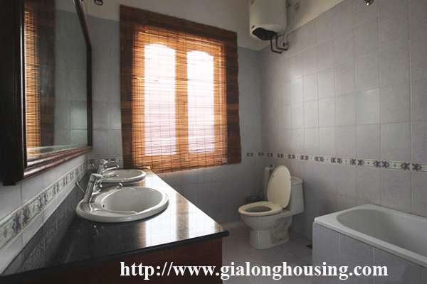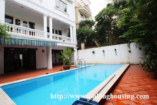 Biệt thự rất đẹp với bể bơi cực lớn cho thuê tại quận Tây Hồ. Tổng diện tích là 400 mét vuông với vườn cây xanh xung quanh. Tất cả các phòng đều tươi sáng, thoáng mát và tràn ngập ánh sáng tự nhiên. Bạn có thể tận hưởng không khí trong lành và thư giãn thoải mái . Biệt thự có 04 tầng với 5 phòng ngủ. Tổng diện tích đất lên tới 400 met vuông, diện tích xây dựng là 120 mét vuông.