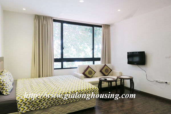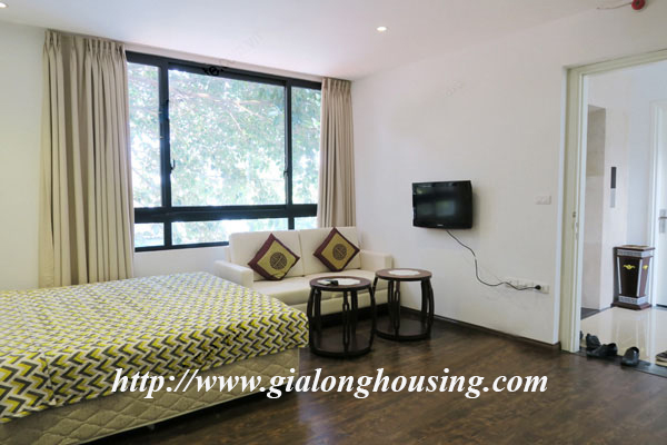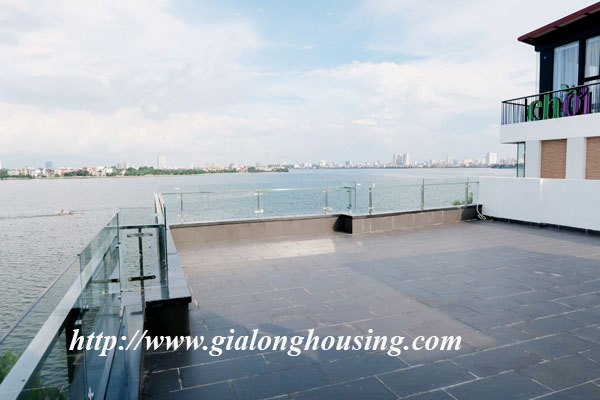 Diện tích căn hộ là 45m2, gồm 01 phòng ngủ, 01 phòng tắm, 01 phòng khách view thẳng ra hồ. Căn hộ đã trang trí đầy đủ nội thất như trong ảnh và khách thuê có thể chuyển đén ở ngay. Căn hộ có sân thượng rất rộng có thể ngồi uống cà phê, ngắm cảnh hồ Tây.