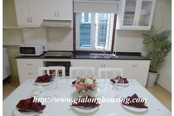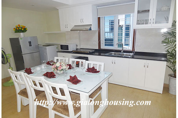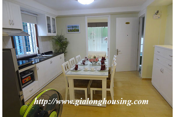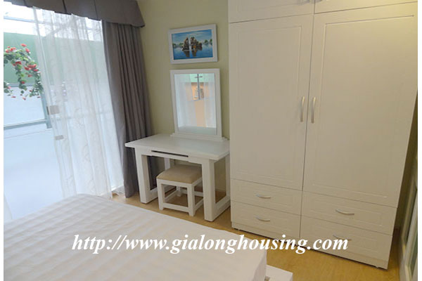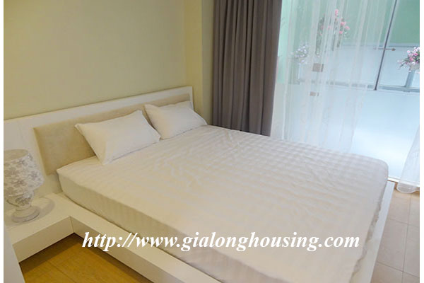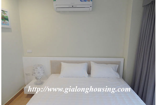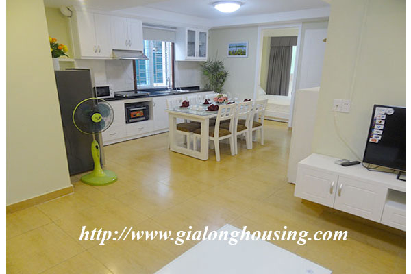 Diện tích căn hộ là 80m2, gồm 02 phòng ngủ, 01 phòng tắm, 01 phòng khách và bếp. Căn hộ được trang trí nội thất mới, gam màu sáng, với cách bài trí hợp lý tạo nên một không gian sáng trọng và mới mẻ. Giá thuê căn hộ đã bao gồm internet, TH Cab, Nước sinh hoạt, dọn phòng và khách thuê chỉ việc trả tiền điện.
