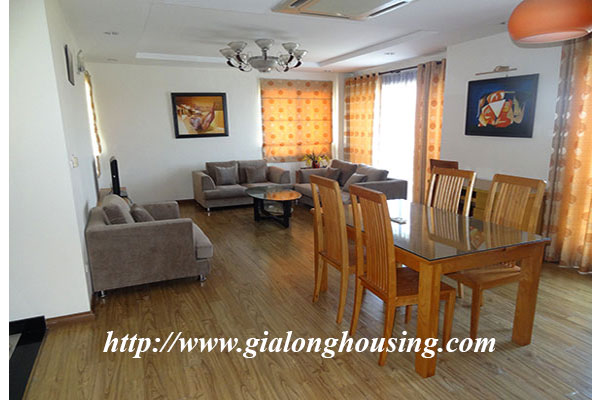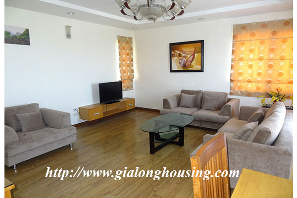 Diện tích căn hộ là 110m2, gồm 02 phòng ngủ, 02 phòng tắm, 01 phòng khách, và ban công ở mỗi phòng ngủ. Căn hộ đã trang trí đầy đủ nội thất và thich hợp cho hộ gia đình ở cả nhiều và ít người. Căn hộ ở tầng cao, view toàn cảnh thành phố, cầu, sông hồng....