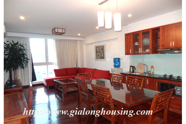 Cho thuê căn hộ dịch vụ ở Lạc Chính, Trúc Bạch, diện tích căn hộ 100m2, 1 phòng ngủ, 1 nhà vệ sinh, căn hộ đẹp, rộng , thoáng đầy đủ nội thất hiện đại, giao thông đi lại thuận tiện, view nhìn ra hồ Trúc Bạch, giá cho thuê 900$/tháng.