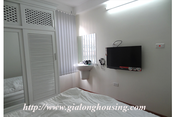 Cho thuê căn hộ dịch vụ phố Đường Thành quận Hoàn Kiếm.Căn hộ có diện tích 50m2 được thiết kế 01 phòng ngủ,01 phòng tắm,nội thất đầy đủ,sàn gỗ.Căn hộ có thang máy.Giá thuê 550usd/tháng có bao gồm phí sử dụng internet,truyền hình cáp,nước và tiền điện