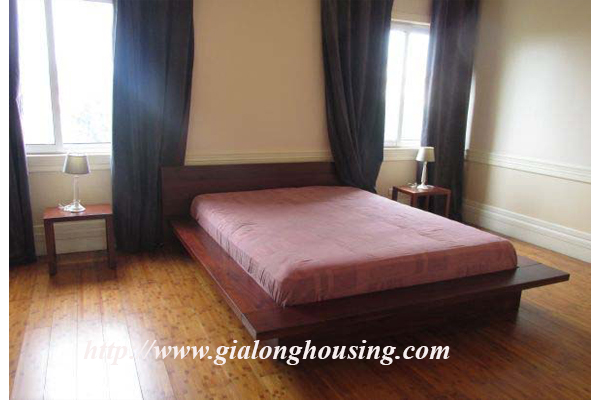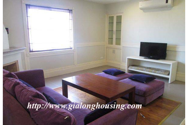 Cho thuê căn hộ ở phố Bà Triệu,Cách hồ Hoàn Kiếm 5 phút đi bộ. Căn hộ ở trong ngõ yên tĩnh. Căn hộ có diện tích:120m2, thiết kế 2 phòng ngủ, 2 vệ sinh trang bị đầy đủ nội thất hiện đại theo phong cách Pháp, phù hợp cho gia đình,chuyên gia nước ngoài thuê để ở.
