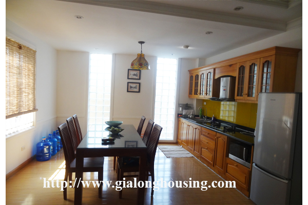 Căn hộ dịch vụ cho thuê ở làng Yên Phụ, quận Tây Hồ. Kích thước của căn hộ này là 130 m vuông, bao gồm một phòng khách kết hợp với khu vực ăn uống, nhà bếp được trang bị tốt, 03 phòng ngủ và 02 phòng tắm. Căn hộ ngập tràn ánh sáng và thoáng mát. Giá thuê bao gồm: internet, truyền hình cáp, phí nước.