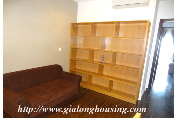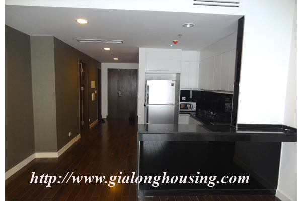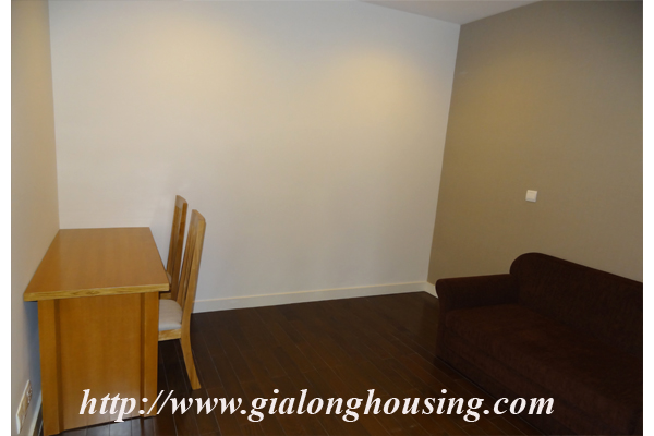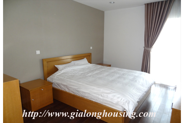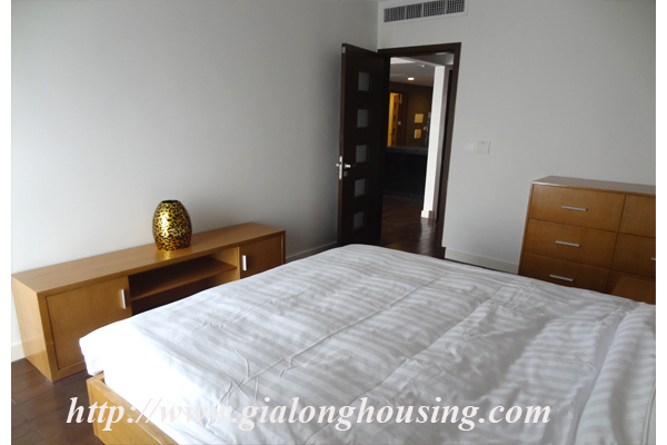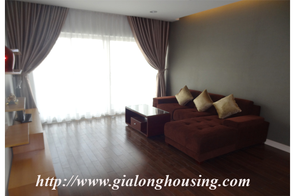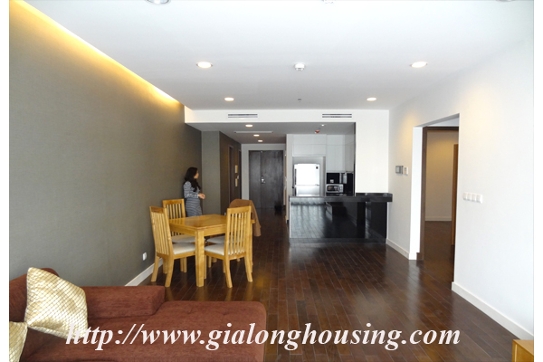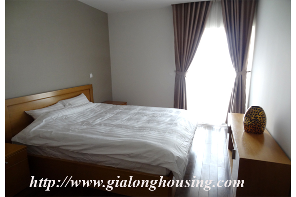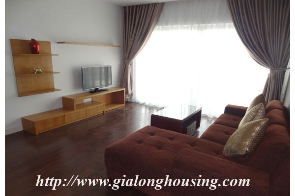 Tổng diện tích là 110 mét vuông, căn hộ này có 03 phòng ngủ và 02 phòng tắm. Từ ban công, bạn có thể thấy hồ Ngọc Khánh. Tòa nhà có các dịch vụ đầy đủ như: nhà hàng, hồ bơi, phòng tập thể dục và trung tâm yoga.