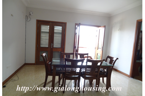Nằm trên khu vực rất yên tĩnh của đường Âu Cơ, quận Tây Hồ, căn hộ là mới và yên tĩnh, chỉ mất 15 phút để đi xe máy đến khu vực hồ Hoàn Kiếm .Diện tích 145 mét vuông với 3 phòng ngủ, 2 phòng tắm, ban công, nội thất đầy đủ với nội thất mới và hiện đại: sofa, TV. Internet tốc độ cao và truyền hình cáp có sẵn trong căn hộ. Cho thuê là 550 USD (bao gồm nước, Internet và lệ phí truyền hình cáp)
