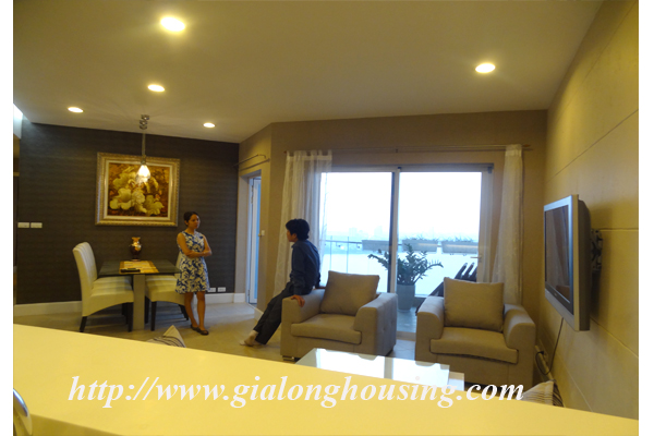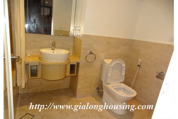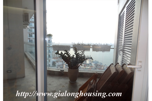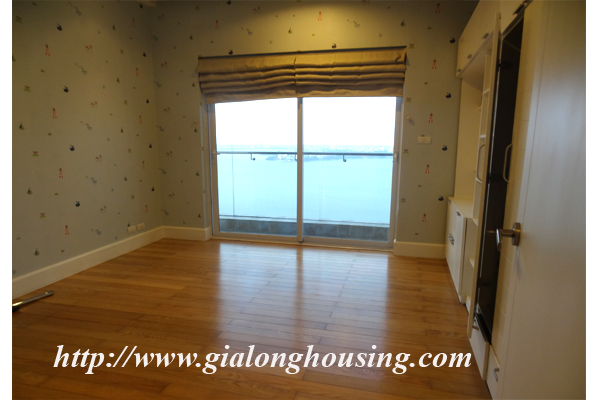 Căn hộ cao cấp cho thuê tại tòa nhà Golden Westlake, hồ Tây. Diện tích đất là 117 m vuông, được thiết kế với 2 phòng ngủ, 2 phòng tắm, phòng khách đẹp, phòng ăn và nhà bếp. Tốt nội thất. Căn hộ này nằm trên tầng cao, do đó nó rất yên tĩnh, tươi sáng và yên tĩnh, với tầm nhìn hồ từ tất cả các phòng. Tiện nghi: kết nối internet, kết nối điện thoại, truyền hình cáp, điều hòa không khí, nhà để xe, Bảo vệ 24 giờ, thang máy, báo cháy tự động, quản lý chuyên nghiệp, bể bơi công cộng, phòng tập thể dục, vv .. Đó là lý tưởng cho một cuộc sống hàng ngày của gia đình. Giá thuê: 1600USD/tháng