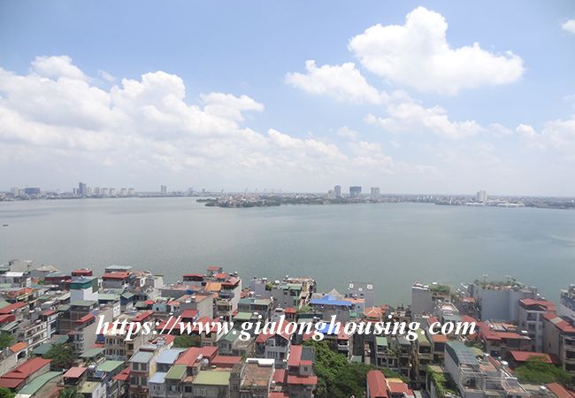Đây là căn hộ rất sáng sủa và đẹp trên tầng cao của tháp W, hồ Tây Golden. Diện tích của căn hộ này là 115 m2 với 02 phòng ngủ và 02 phòng tắm. Các cư dân sẽ được hưởng các dịch vụ chất lượng cao: hồ bơi, an ninh, sân tennis, phòng tập thể dục, siêu thị mini.