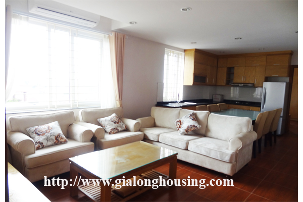 Căn hộ dịch vụ cho thuê tại đường Âu Cơ, quận Tây Hồ. Diện tích sử dụng là 80 mét vuông, được thiết kế với 2 phòng ngủ 2 phòng tắm, phòng khách đẹp và nhà bếp. Không gian sống tươi sáng với sàn gỗ. Tiện nghi: điều hòa không khí, kết nối internet, kết nối điện thoại, truyền hình cáp, quản lý chuyên nghiệp, lễ tân, an ninh tốt, thang máy, vv ...