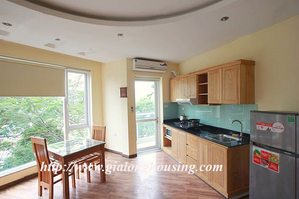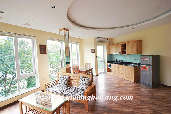 Cho thuê căn hộ dịch vụ ở phố Trẫn Vũ mặt hồ Trúc Bạch, diện tích 65m2, 1 phòng ngủ, 1 phòng tắm, căn hộ đẹp, đầy đủ nội thất hiện đại, khu vực an ninh tốt, nhiều người nước ngoài ở, giao thông thuận tiện, khôn khí trong lành, miễn phí internet, truyền hình cáp, nước.