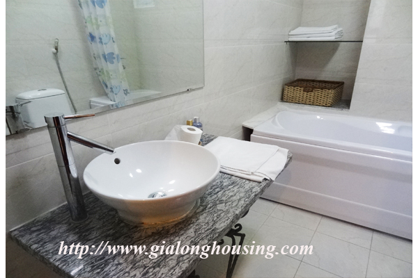 Cho thuê căn hộ dịch vụ mới ở phố Hàng Than, quận Ba Đình, diện tích 85m2, 1 phòng ngủ, 1 phòng tắm, căn hộ mới hoàn thành, nối thất mới hiện đại, căn hộ nằm ở khu vực trung tâm của thủ đô, giao thông đi lại thuận tiện, đi xe máy 5 phút ra hồ Trúc Bạch, đi 10 phút vào hồ Gươm, căn hộ miễn phí internet, truyền hình cáp, nước và dọn dẹp phòng.