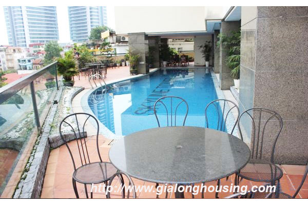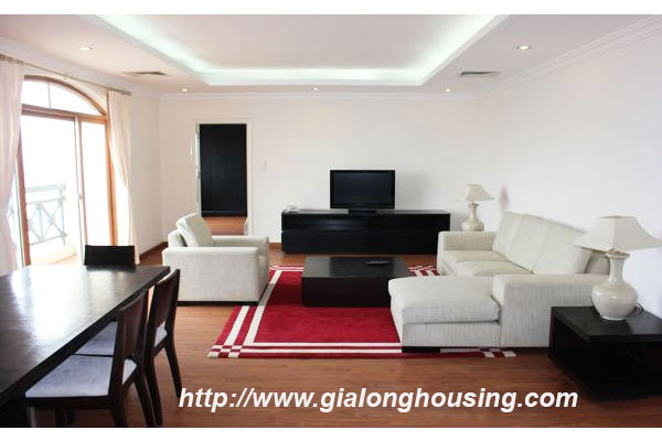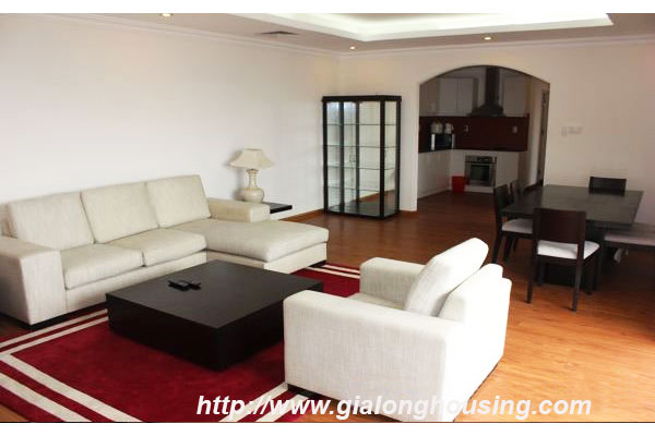Căn hộ dịch vụ cho thuê ở tòa Skyline, Trúc Bạch, diện tích 115m2, 3 phòng ngủ, 2 phòng tắm, 2 ban công, căn hộ rất đẹp, nội thất hiện đại, đầy đủ mọi dịch vụ, giao thông thuận tiện, view nhìn ra hồ Trúc Bạch.