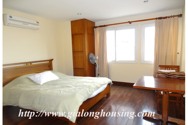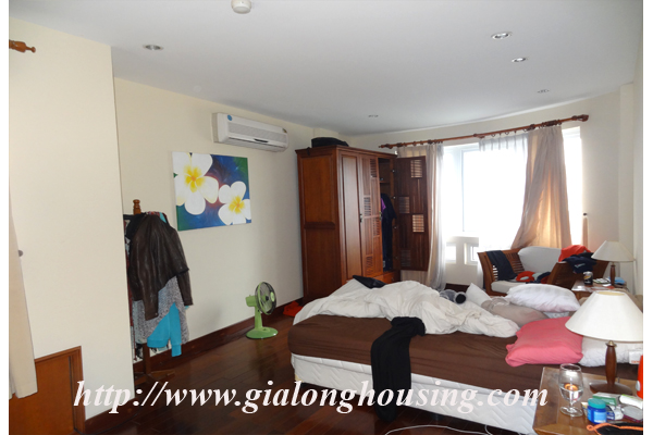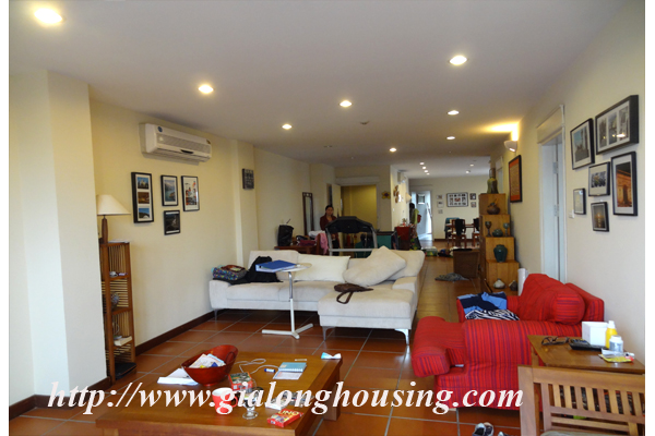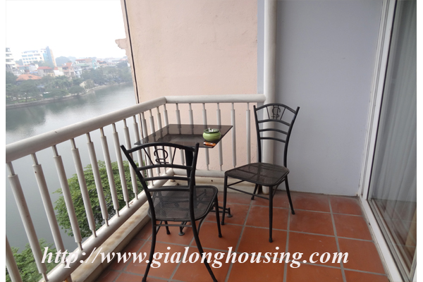 Căn hộ nằm trên phố Trấn Vũ cho thuê, diện tích 180m2, 3 phòng ngủ, 2 phòng tắm, 1 phòng khách rộng, căn hộ rất rộng thoáng, nội đầy đủ hiện đại, có ban công, view nhìn ra hồ Trúc Bach, an ninh 24/24, căn hộ nằm ở trung tâm của thành phố.
