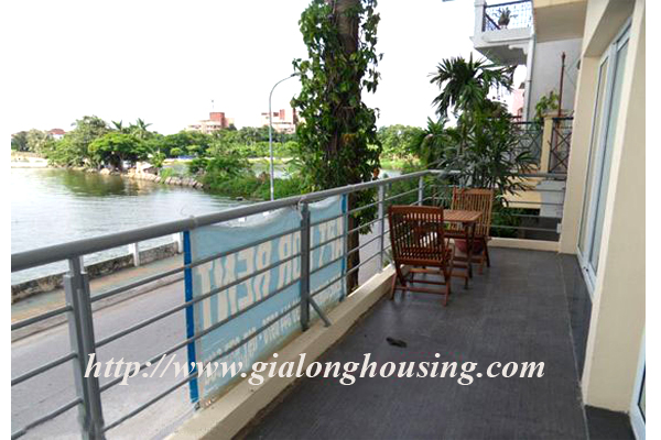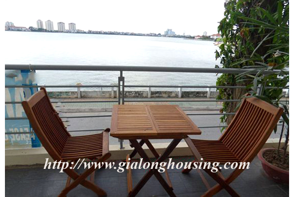 Căn hộ dịch vụ view Hồ Tây cho thuê . Diện tích xây dựng là 165 m vuông gồm 3 phòng ngủ, 3 phòng tắm, phòng khách đẹp và nhà bếp, và khu vực ăn. Nó có một ban công với tầm nhìn đẹp. Căn hộ được trang bị tốt cho một cảm giác sang trọng và thoải mái.