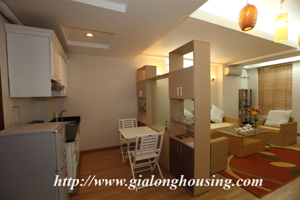 Căn hộ dịch vụ cho thuê 01 phòng ngủ tại quận Hoàn Kiếm, tòa nhà có thang máy, bảo vệ 24/24, sàn gỗ, bếp hiện đại, yên tĩnh, khu dân cư dân trí cao. Gía thuê đã bao gồm : nước sinh hoạt, internet, truyền hình cáp