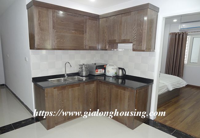 Căn hộ dịch vụ mới tọa lạc tại Núi Trực, không xa tòa nhà Lancaster, trường Trường Alexandre Yersin của Pháp và hồ Giảng Võ. Tổng diện tích 55 m2, bao gồm 02 phòng ngủ và 01 phòng tắm. Nhà bếp hiện đại được kết hợp với phòng khách. Giá thuê bao gồm: truyền hình cáp, internet không dây, dịch vụ dọn dẹp 01 lần / tuần. Mỗi phòng đều có máy giặt riêng.