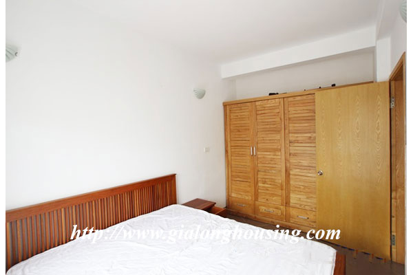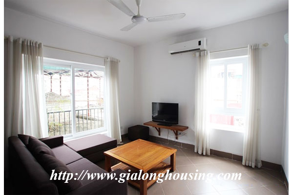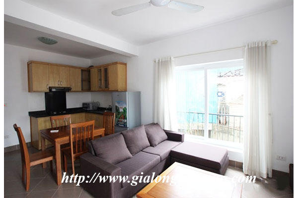 Đây là một căn hộ rất đẹp và sáng ở phố Ngọc Hà, gần công viên Bách Thảo, lăng Hồ Chí Minh . Tòa nhà có thang máy, bảo vệ 24/ 24h, chỗ để xe, khu vực giặt công cộng. Tổng diện tích của căn hộ là 55 m2 với 01 phòng ngủ và 01 phòng tắm, nội thất đầy đủ. Các căn hộ tầng thấp chỉ là 450$/ Tháng và những căn cao hơn với tầm nhìn tốt hơn là 550$/ Tháng.