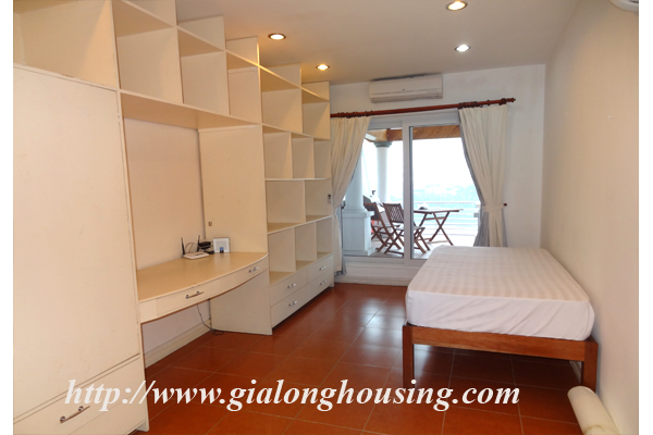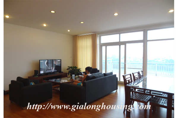 Căn hộ dịch vụ rộng cho thuê ở Trúc Bạch cho thuê với diện tích 243m2, 3 phòng ngủ, 3 phòng vệ sinh, 1 phòng khách rộng, 1 phòng bếp, căn hộ rất rộng, thoáng nhiều ánh sáng tự nhiên, nội thất hiện đại, view nhìn ra hồ Trúc Bạch, giá cho thuê 2800$/tháng.