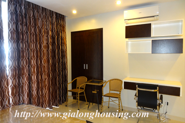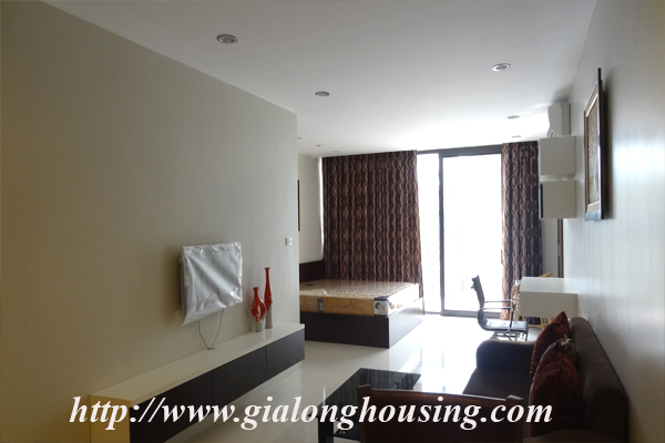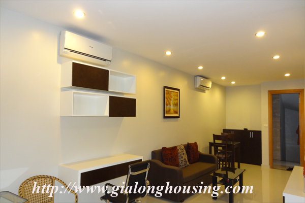 Căn hộ mới cho thuê ở Trúc Bạch, diện tích 60m2, 1 phòng ngủ, 1 phòng vệ sinh, căn hộ mới, nội thất hiện đại, căn hộ nằm ngay ở mặt hồ, view nhìn thẳng xuống hồ, giá cho thuê 750$/tháng.