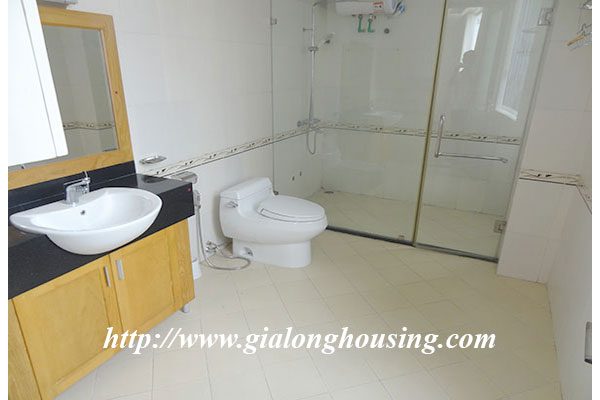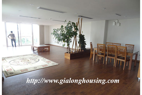 Diện tích căn hộ là 280m2, gồm 03 phòng ngủ, 04 phòng tắm, 01 phòng khách,03 ban công view hồ Tây. Căn hộ đã trang trí đầy đủ nội thất sang trọng, đẹp, và khách thuê có thể chuyển đến ở ngay. Căn hộ thích hợp cho hộ gia đình nhiều thế hệ, hoặc khách nước ngoài muốn có cảm giác sống thoải mải như ở nhà.