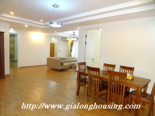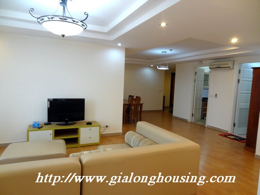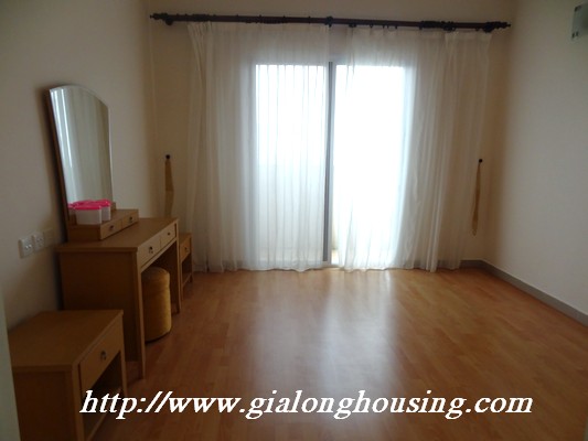 Cho thuê căn hộ E4 Ciputra Hà Nội. Diện tích đất là 153 m vuông được thiết kế với 4 phòng ngủ, 2 phòng tắm, phòng khách đẹp và nhà bếp. Ban công lớn với tầm nhìn đẹp, không gian sinh hoạt tươi sáng. Trang bị đồ đạc và Đầy đủ tiện nghi. Tiện nghi: điều hòa không khí, kết nối internet, kết nối điện thoại, truyền hình cáp, báo cháy tự động, nhà để xe, thang máy, hồ bơi, phòng tập thể dục, sân chơi trẻ em, 24/24 an ninh, quản lý chuyên nghiệp